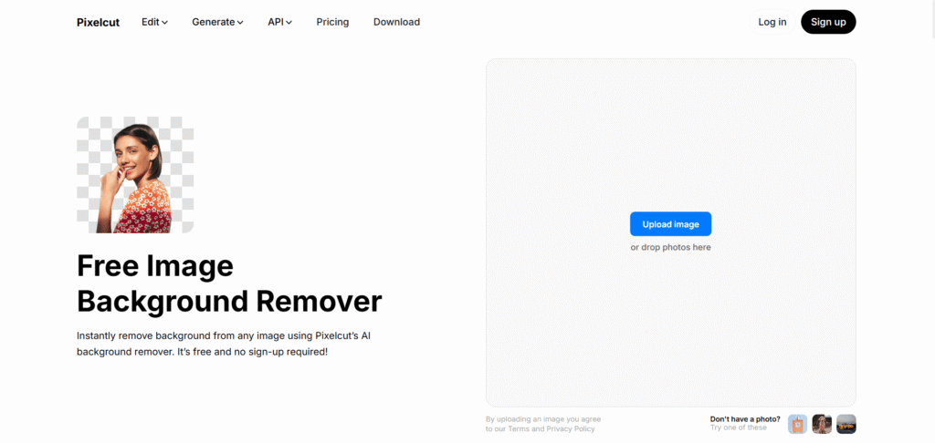 Erase.bg gives off a solid first impression — especially with a simple UI. But when you throw in more complex images like hair or messy backgrounds, the tool struggles. You get a few HD downloads after signing up, but those free credits don’t reset monthly, so use them wisely.